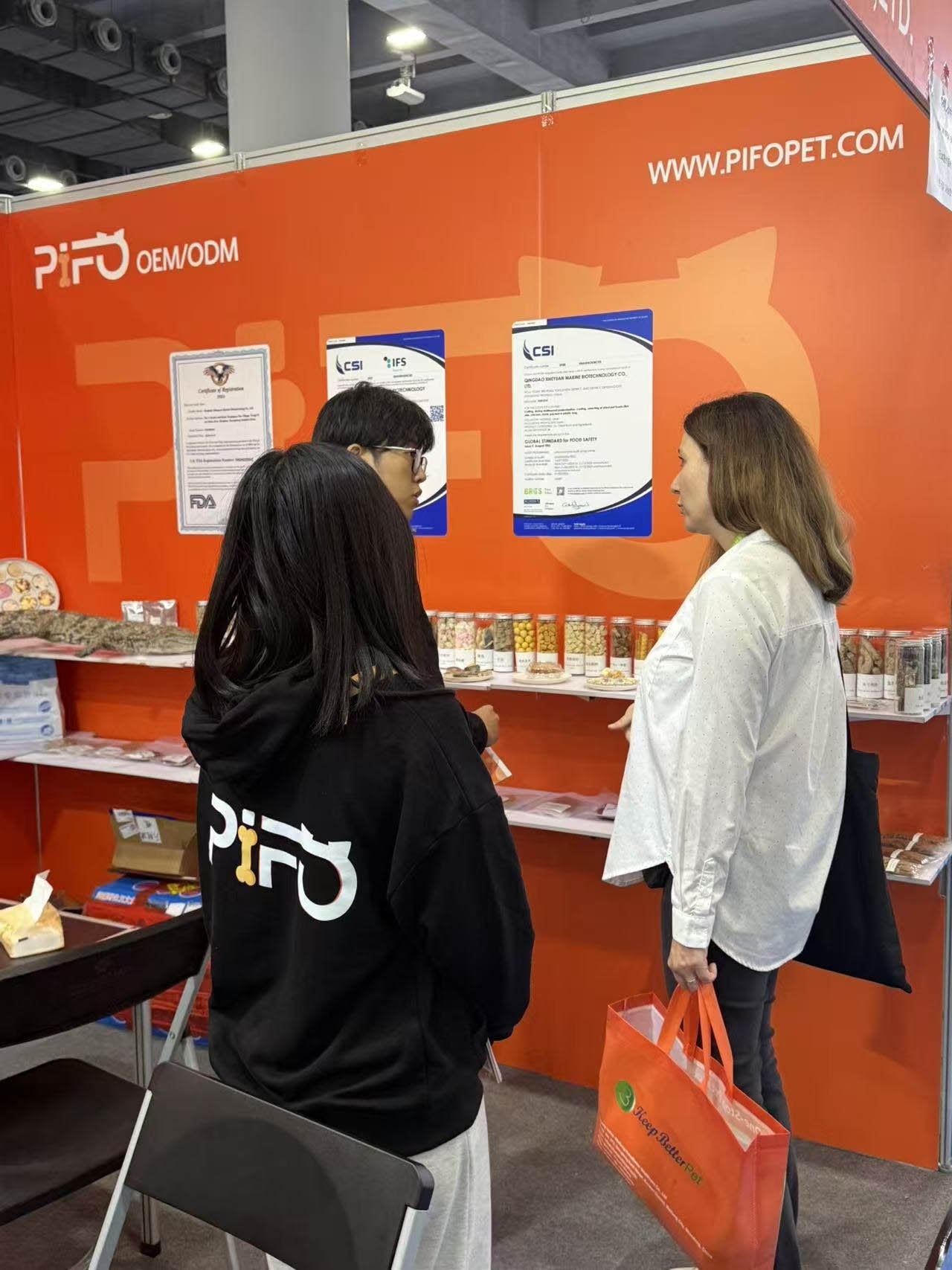 Qingdao PIFO Pet Food Co., LTD se complace en participar en la 29ª Exposición Internacional de Mascotas de China (CIPS), celebrada del 13 al 16 de noviembre de 2025 en Guangzhou, China. Como un evento profesional altamente reconocido e influyente en la industria global de mascotas, CIPS reúne continuamente a marcas líderes, compradores y expertos del sector de todo el mundo. La exposición proporciona una plataforma importante para el intercambio internacional y la presentación de productos, lo que nos permite presentar nuestras nuevas ofertas de productos, comunicarnos con compradores extranjeros y obtener información sobre las tendencias del sector.