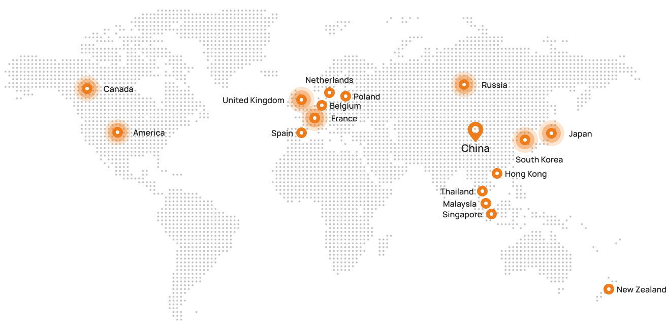 Actualmente, nuestros productos se venden a Estados Unidos, Canadá, Reino Unido, Francia, Bélgica, Polonia, Nueva Zelanda, España, Países Bajos, Corea del Sur, Japón, Rusia, Tailandia, Malasia, Singapur y Hong Kong. Centrándonos en la calidad, el precio, el servicio y la entrega, ofrecemos continuamente snacks para mascotas de alta calidad, sostenibles, saludables y nutritivos a clientes de todo el mundo.